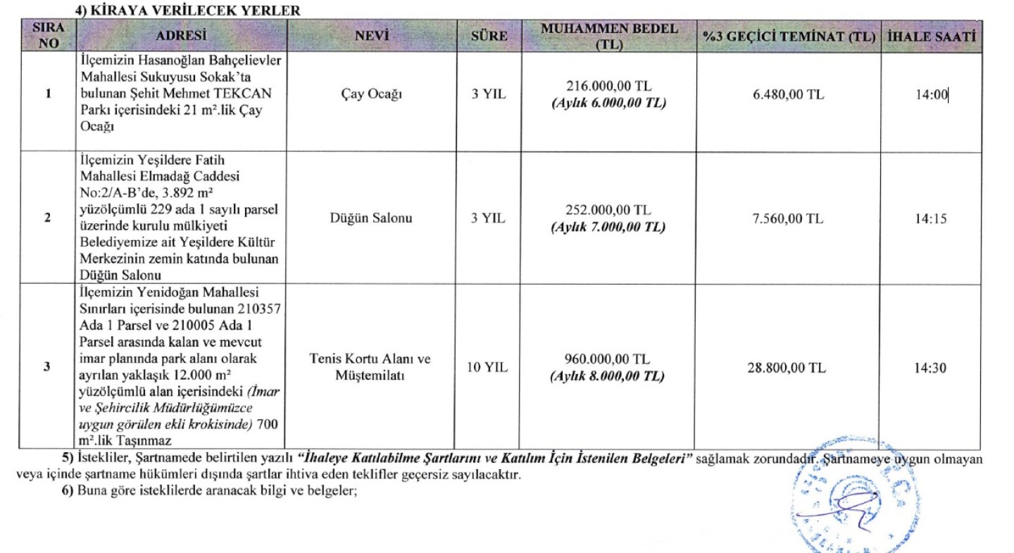 Çay Ocağı/Düğün Salonu/Tenis Kortu Alanı ve Müştem...