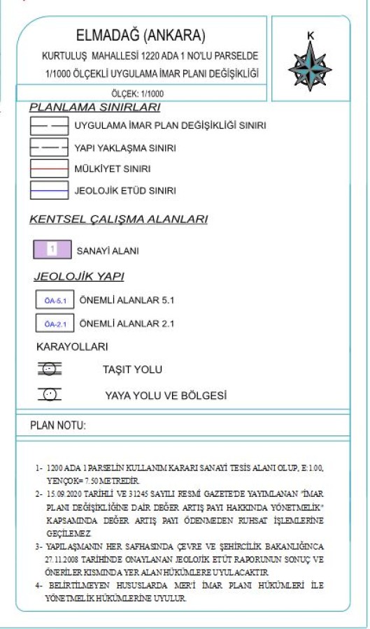 Elmadağ İlçesi Kurtuluş Mah. 1220/1 Parsel 1/1000 Uipd ve 1/5000 Nipd Hk