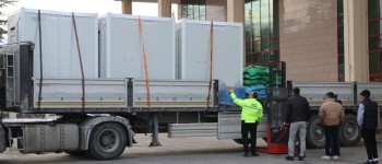 Bugün Hatay Kırıkhan'da oluşturduğumuz Çadırkent'e içinde 3 adet seyyar tuvalet, 4 adet su deposu, 2 takım çadır, masa, sandalyeler ve yakacak malzemelerin bulunduğu 1 tır daha sevk ettik.
